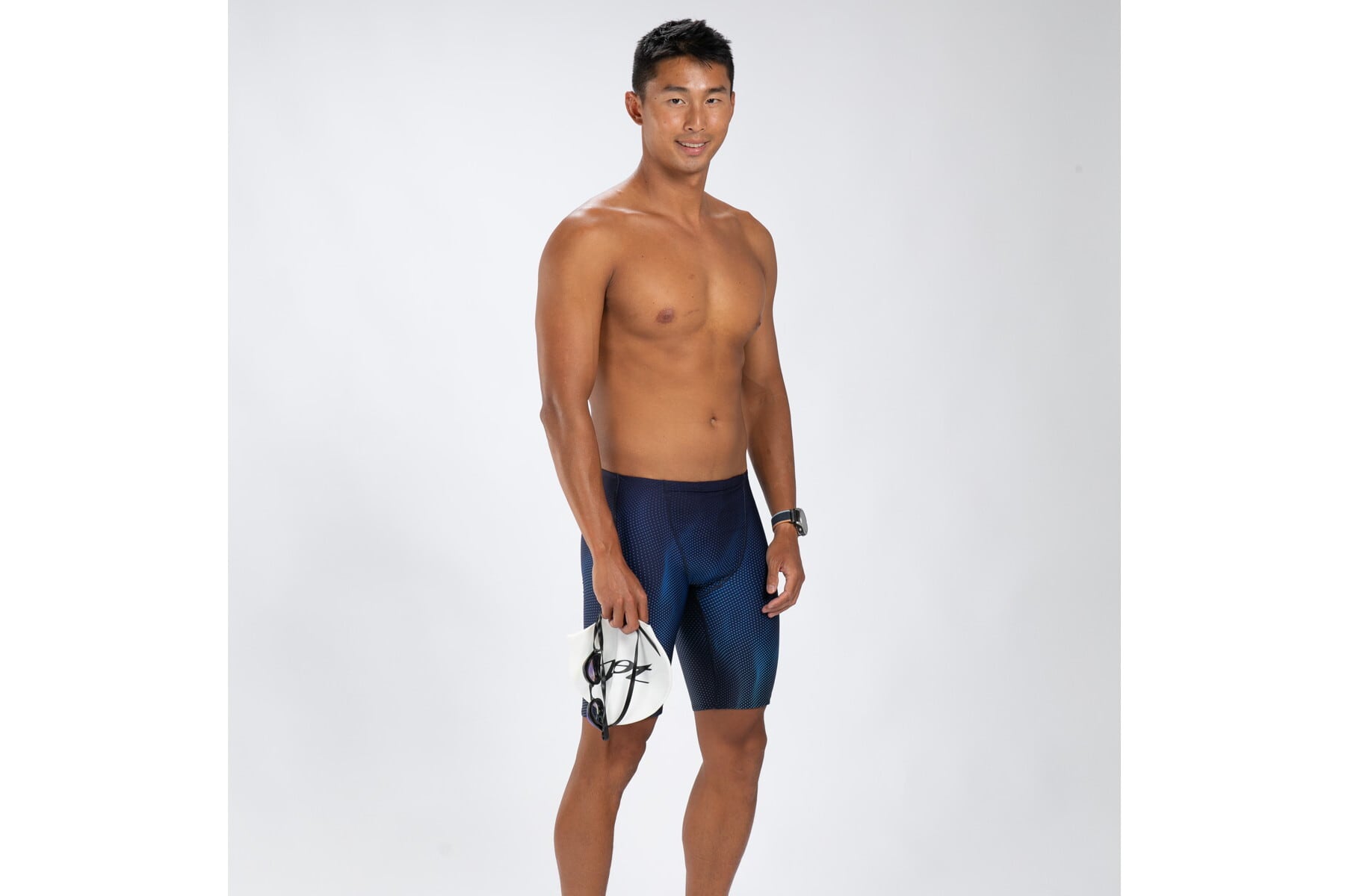 水泳後は必ず新鮮な冷水で洗い流してください。 この大胆なプリントでスイム セットにトライアスロン スタイルを取り入れましょう。