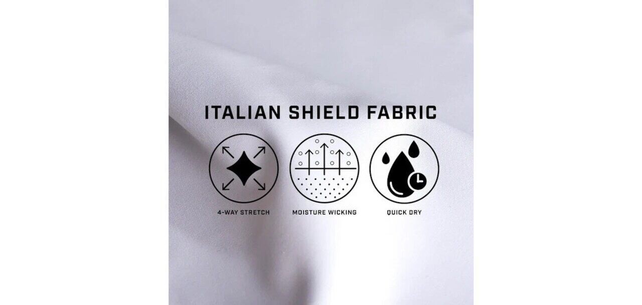 昇華加工を施したイタリア製シールド生地により、最高の湿気管理、快適性、耐久性を保証。